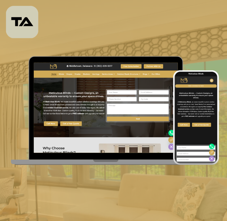 We also restructured their site navigation to support faster crawling and better user flow. Each page was linked semantically product to use case, service area to category to help Google assign topical authority. Product schema was added across key pages to help rich results trigger for local search terms like “custom blinds Middletown DE